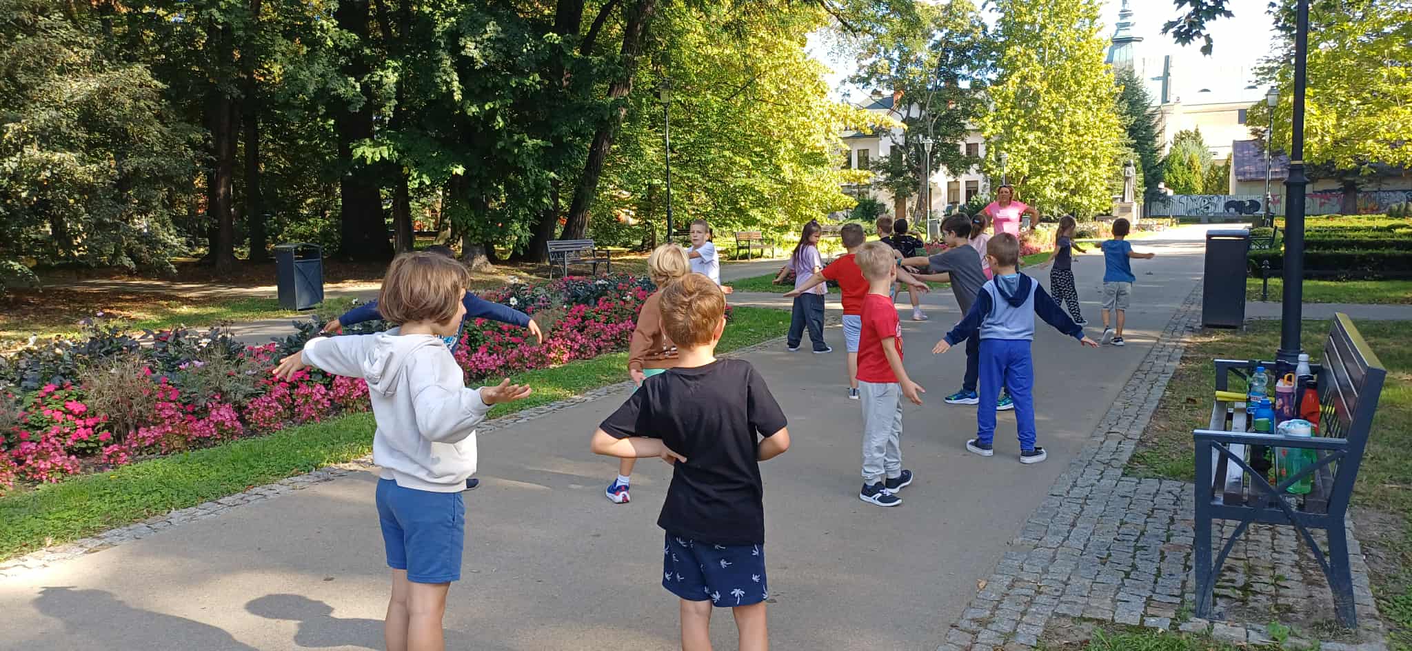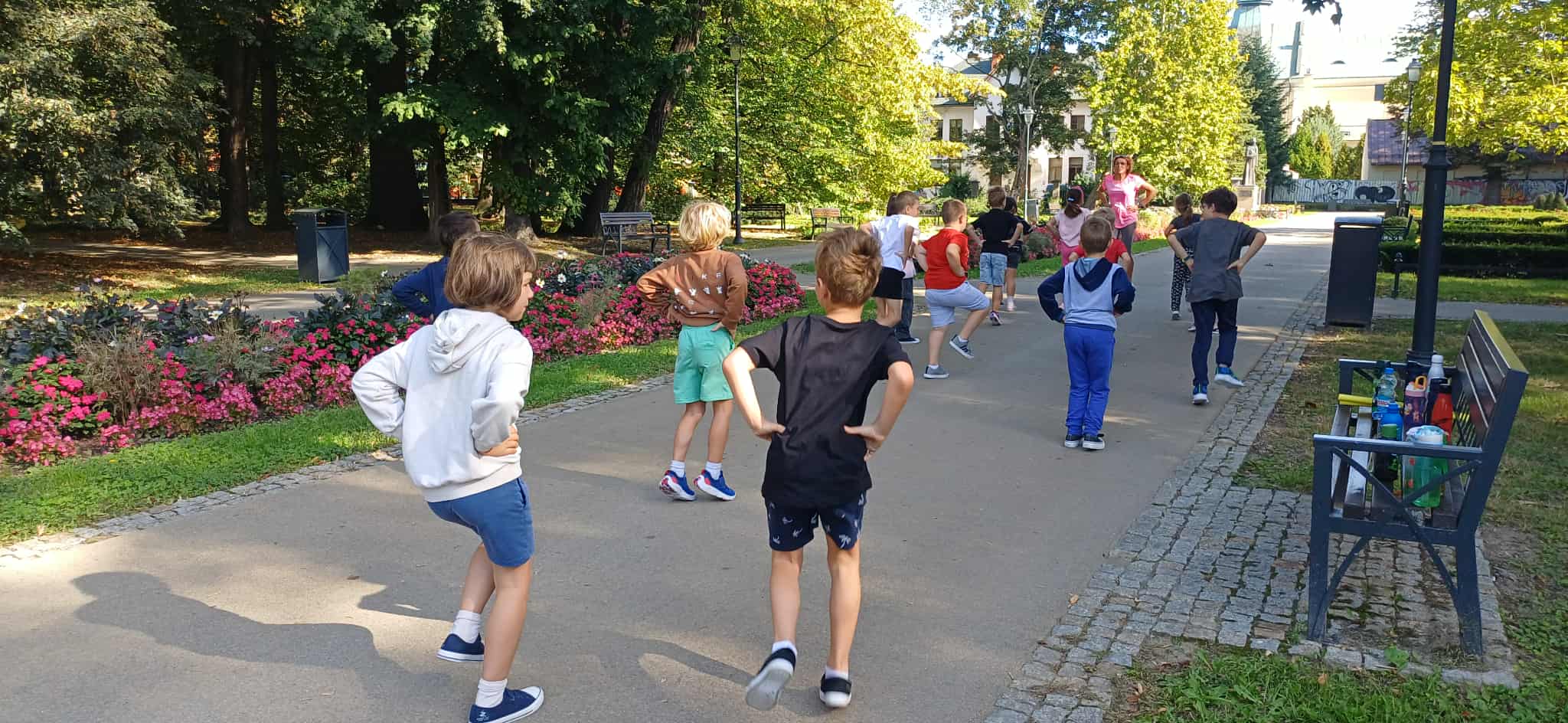 Nasze pierwszaki wzięły udział w kolejnym etapie projektu „Klasa w terenie”. Tym razem to lekcja wychowania fizycznego odbyła się poza murami szkoły – na świeżym powietrzu.