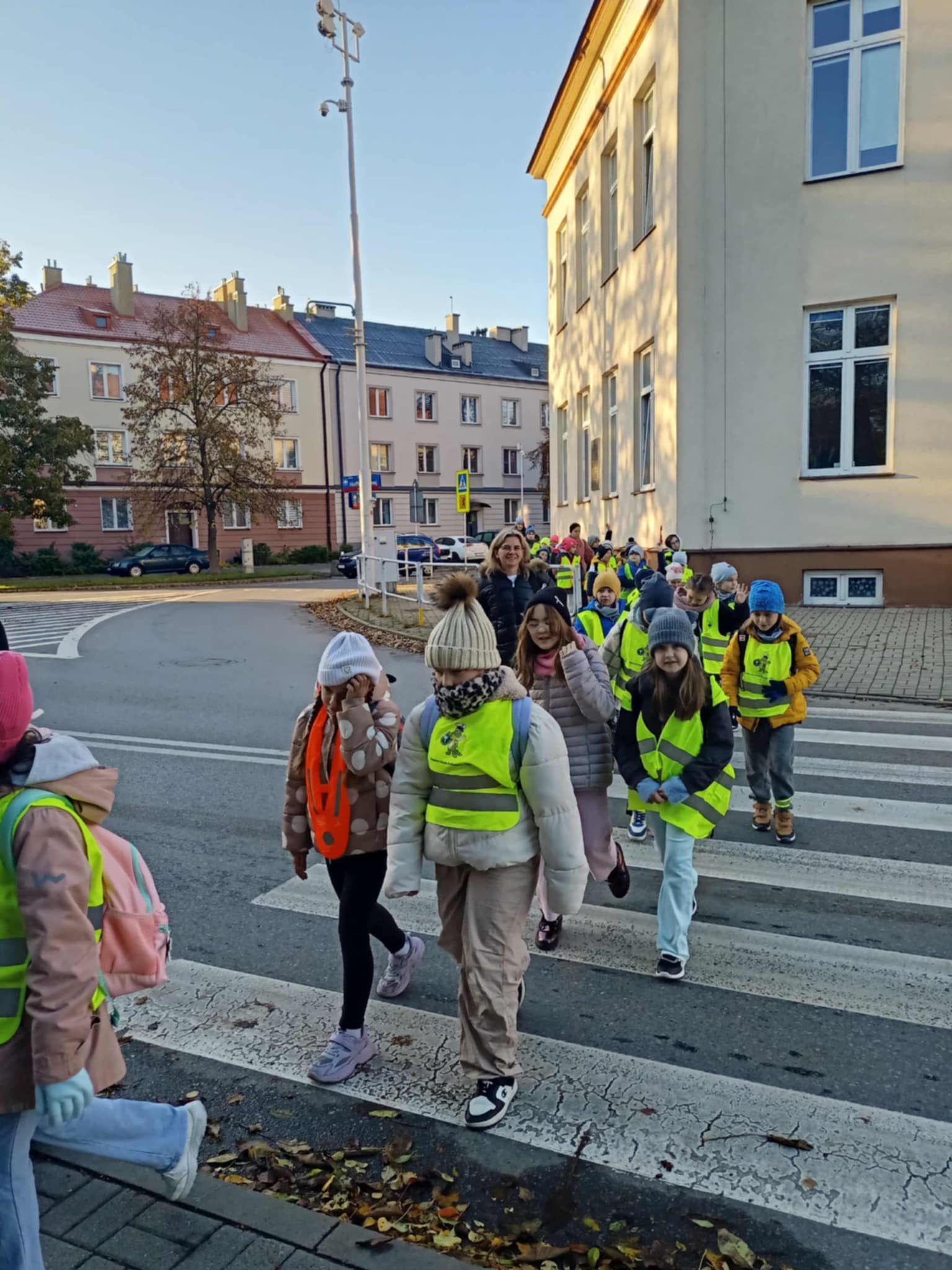 Podczas wyjścia do kina „Zorza” – dzięki dobrej współpracy z rodzicami – nasi najmłodsi uczniowie pojawili się w kamizelkach odblaskowych, które sprawiły, że grupa była widoczna z daleka i promieniała pozytywną energią. Takie inicjatywy pokazują, że być bezpiecznym to znaczy być modnym i odpowiedzialnym.