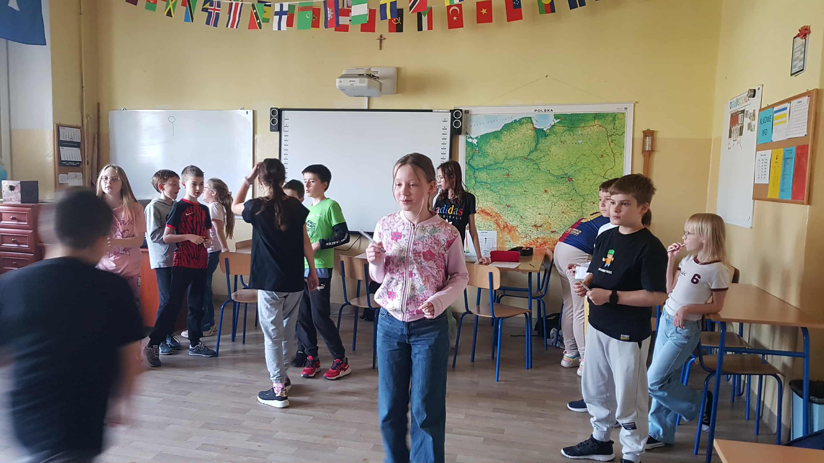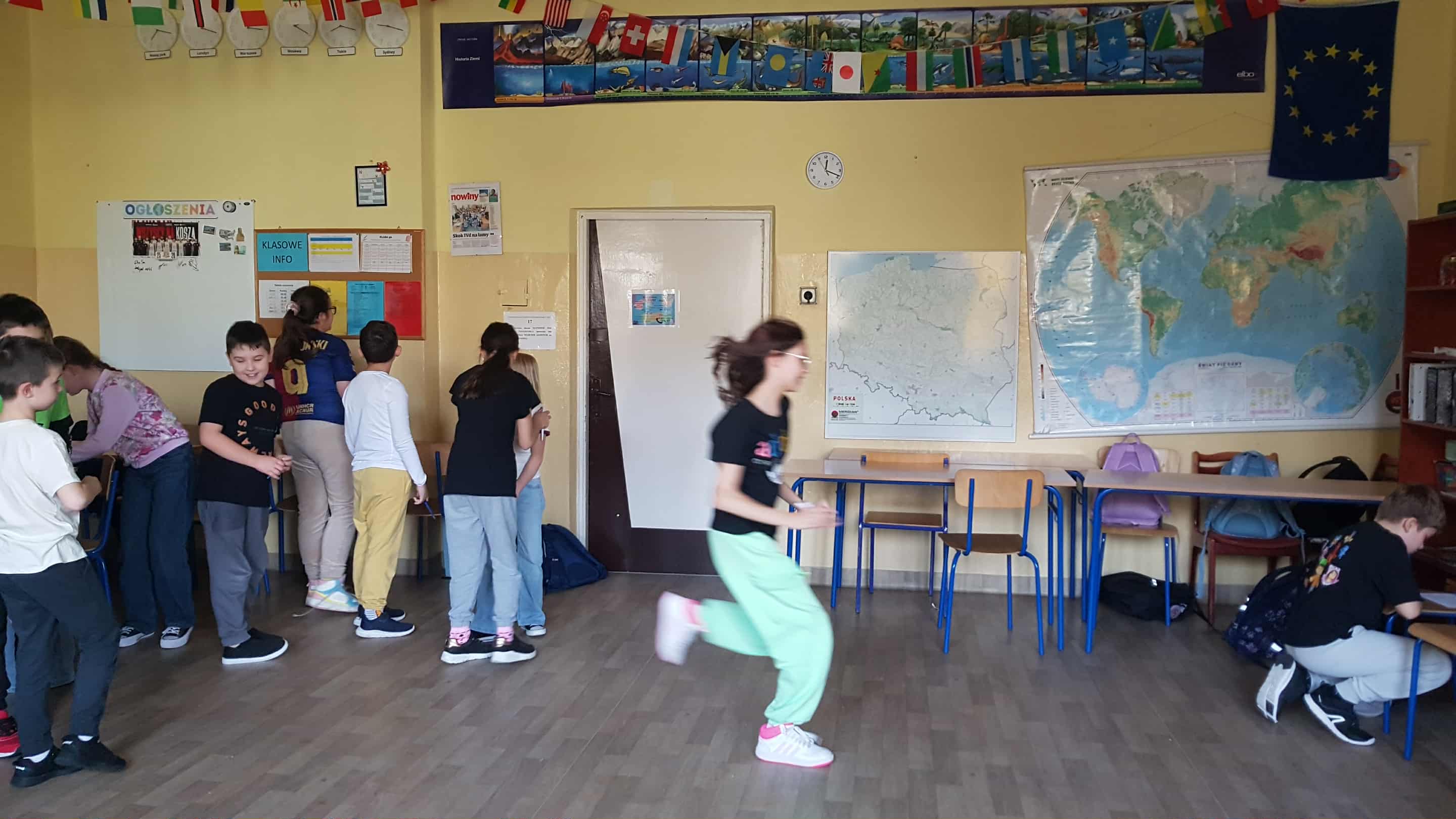 W ramach innowacji pedagogicznej "Polski poza ławką" klasa 4a na lekcji języka polskiego połączyła polonistyczną finezję ze sportową energią.