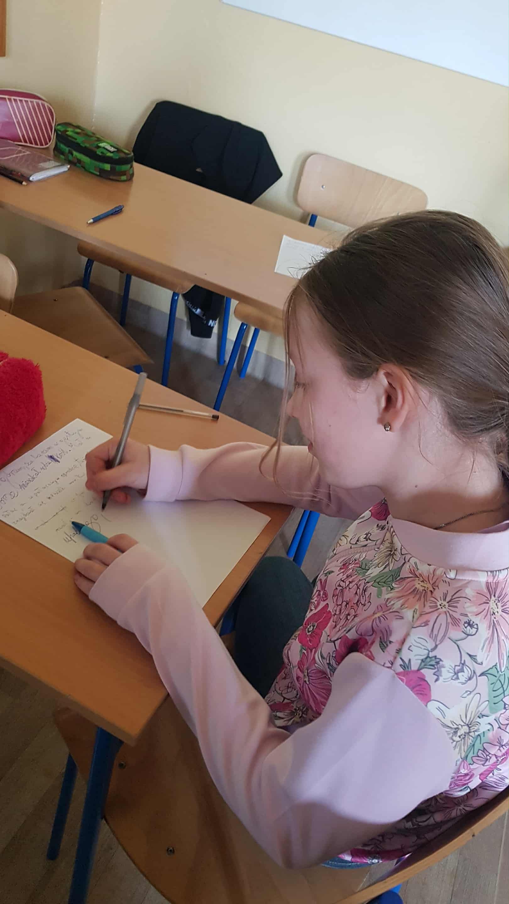 Taka metoda utrwalenia zasad ortograficznych z "ó" i "u" bardzo się wszystkim spodobała. Tym sposobem dyktando zostało „odczarowane” przez naszą polonistkę, panią Agnieszkę.