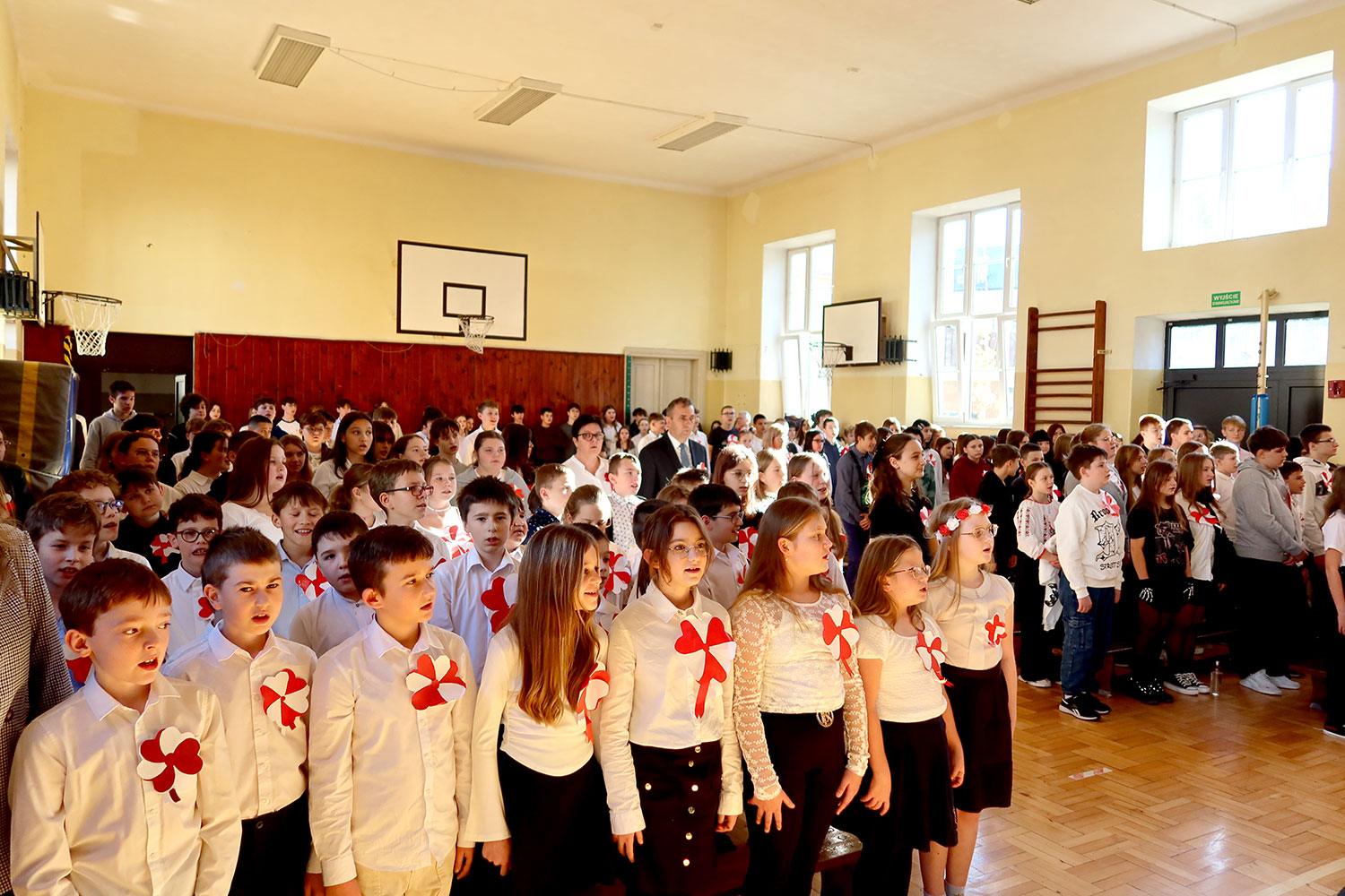 Centralnym punktem obchodów było tradycyjne już wspólne odśpiewanie o godzinie 11:11 czterech zwrotek „Mazurka Dąbrowskiego” w ramach w ogólnopolskiej akcji „Szkoła do hymnu” organizowanej przez Ministerstwo Edukacji Narodowej. Zapoznano się również z informacjami, dlaczego wolność jest tak ważna, ile wymagała poświęceń, abyśmy mogli żyć w suwerennym państwie. Następnie wszyscy zaśpiewali pieśni patriotyczne: „My, Pierwsza Brygada”, „Szara Piechota” i „Rota”.