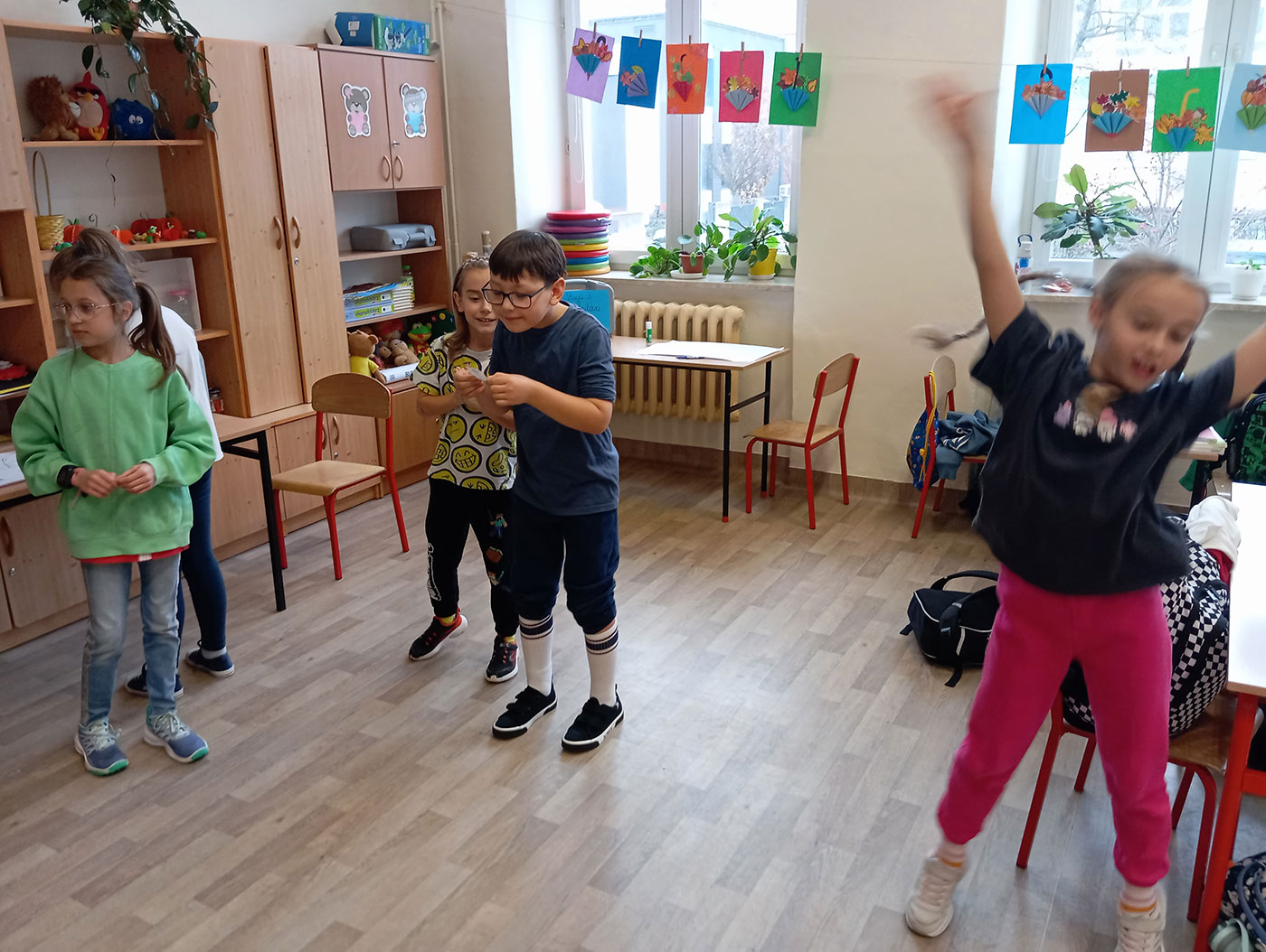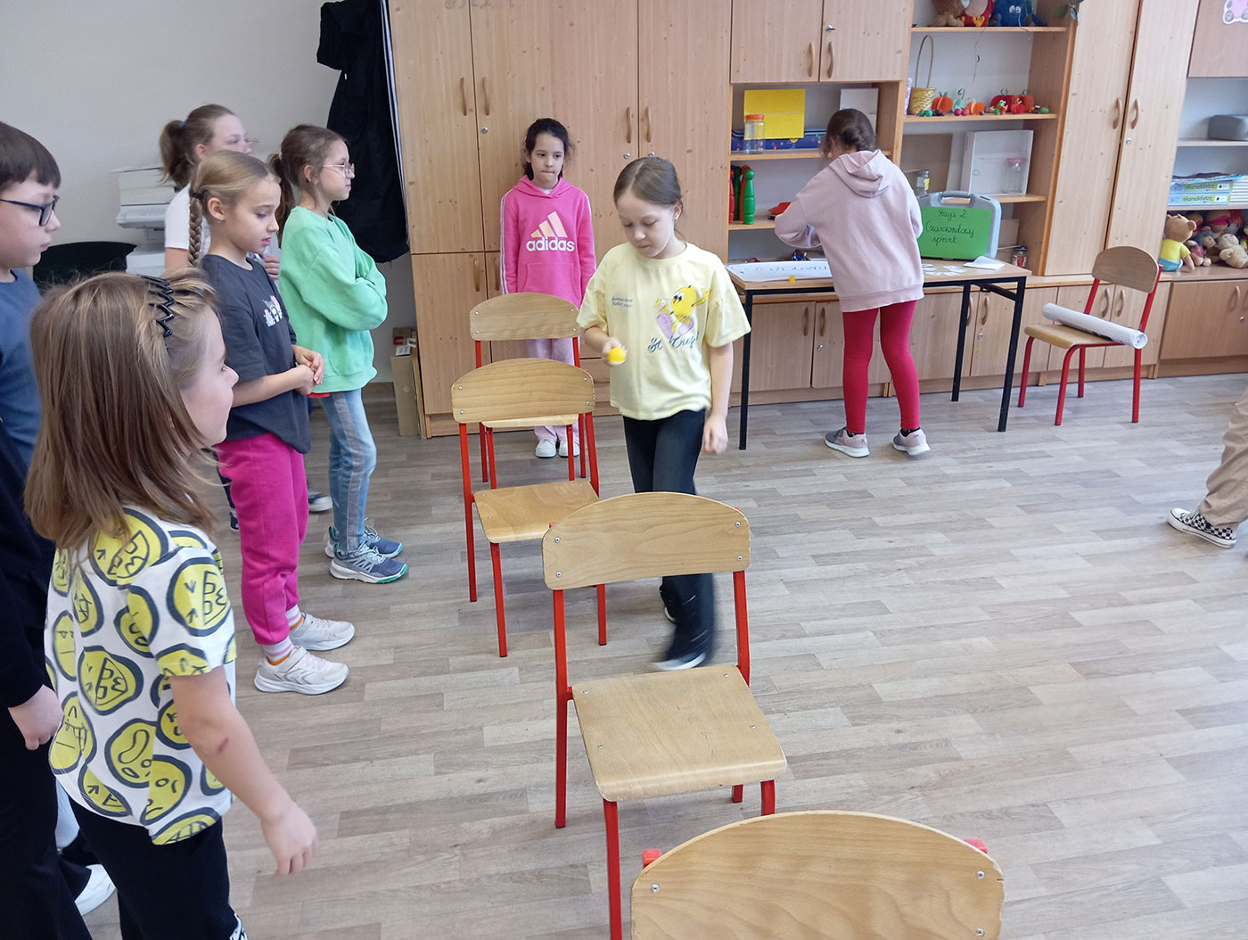 Zajęcia sprzyjały nie tylko doskonaleniu umiejętności polonistycznych, ale również rozwijały współpracę, komunikację, logiczne myślenie oraz sprawność ruchową. Dzieci uczyły się poprzez działanie, zabawę i ruch, co przyniosło dużo radości, zaangażowania i satysfakcji.