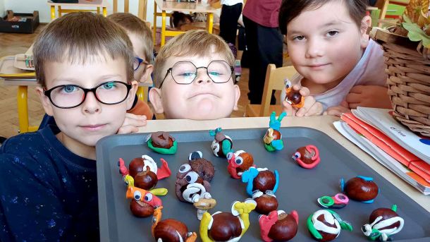 Jesienne zabawy plastyczne z przyrodą w kl.1a