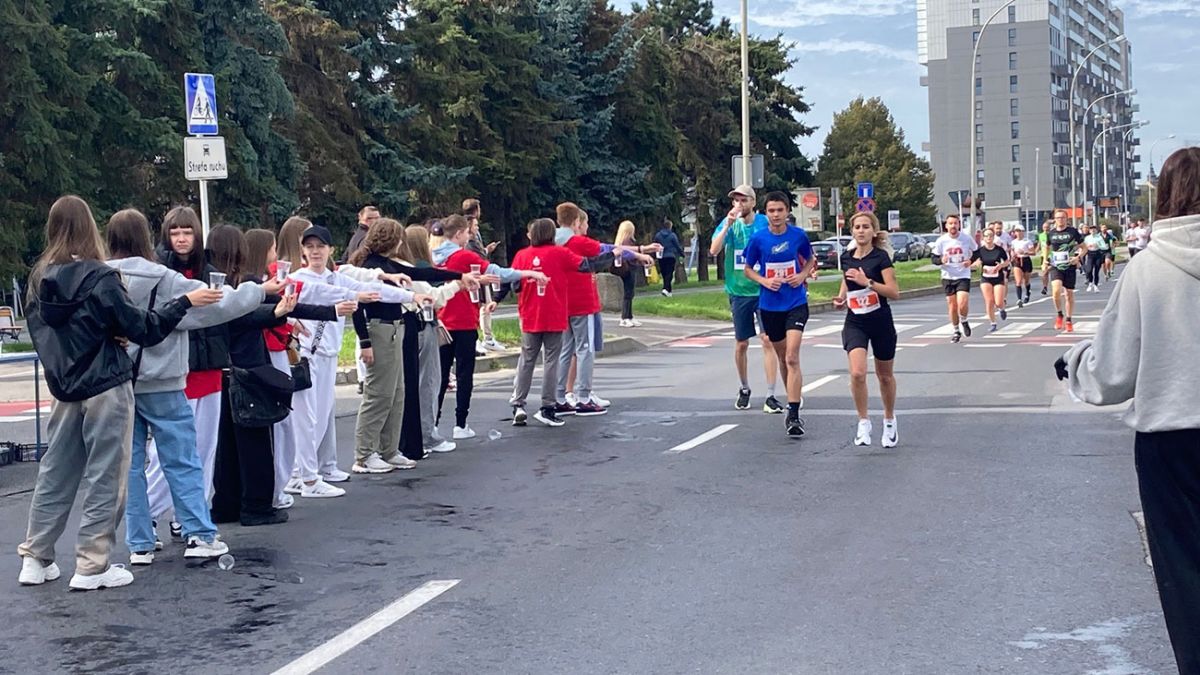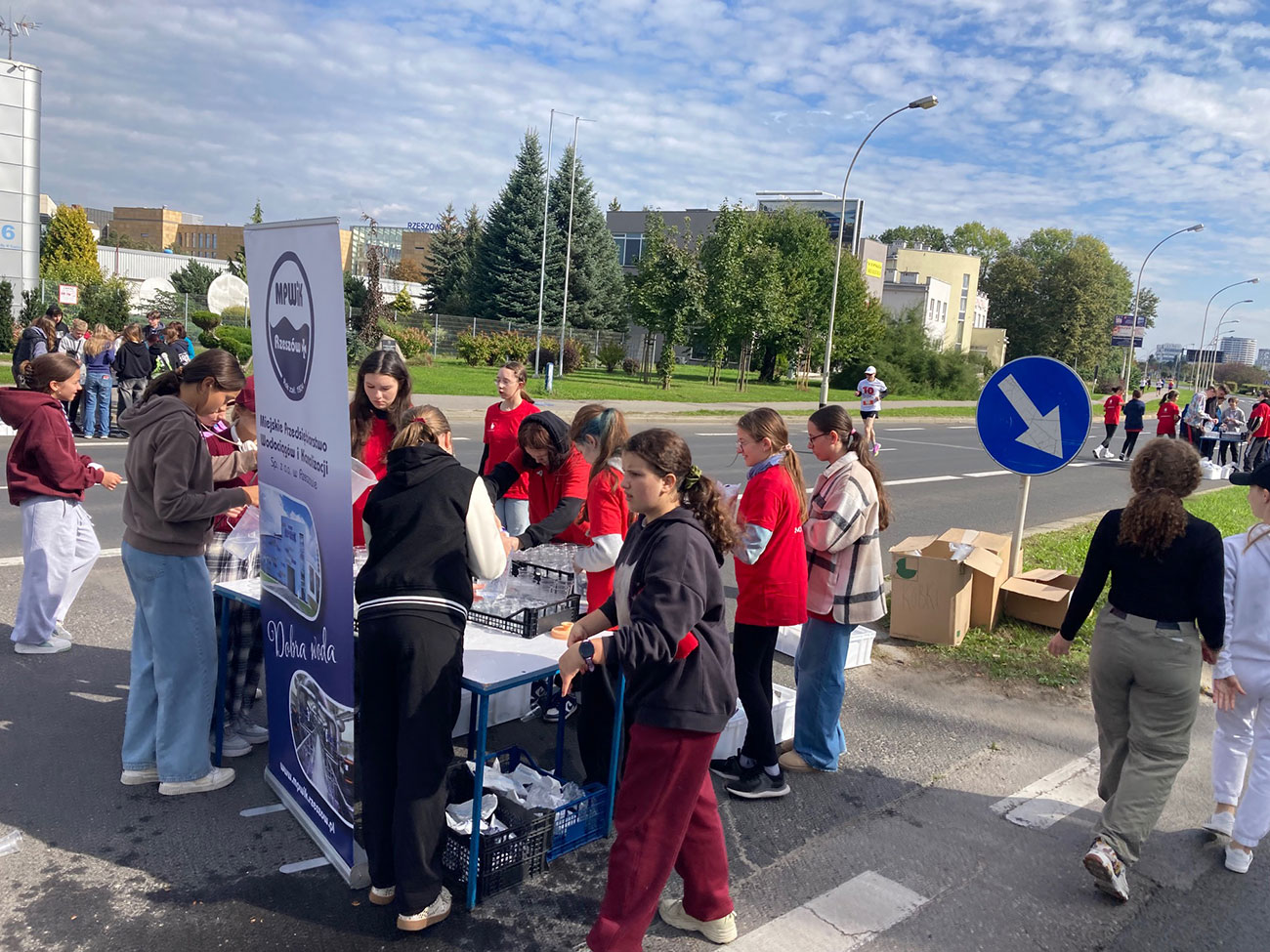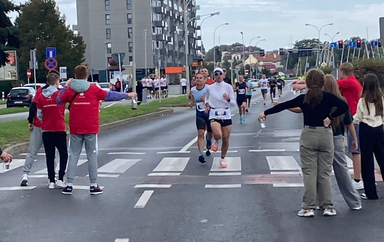 Jak co roku pomagamy biegaczom. Podczas niedzielnego biegu “Pratt &Whitney” wolontariusze obsługiwali punkt z wodą.