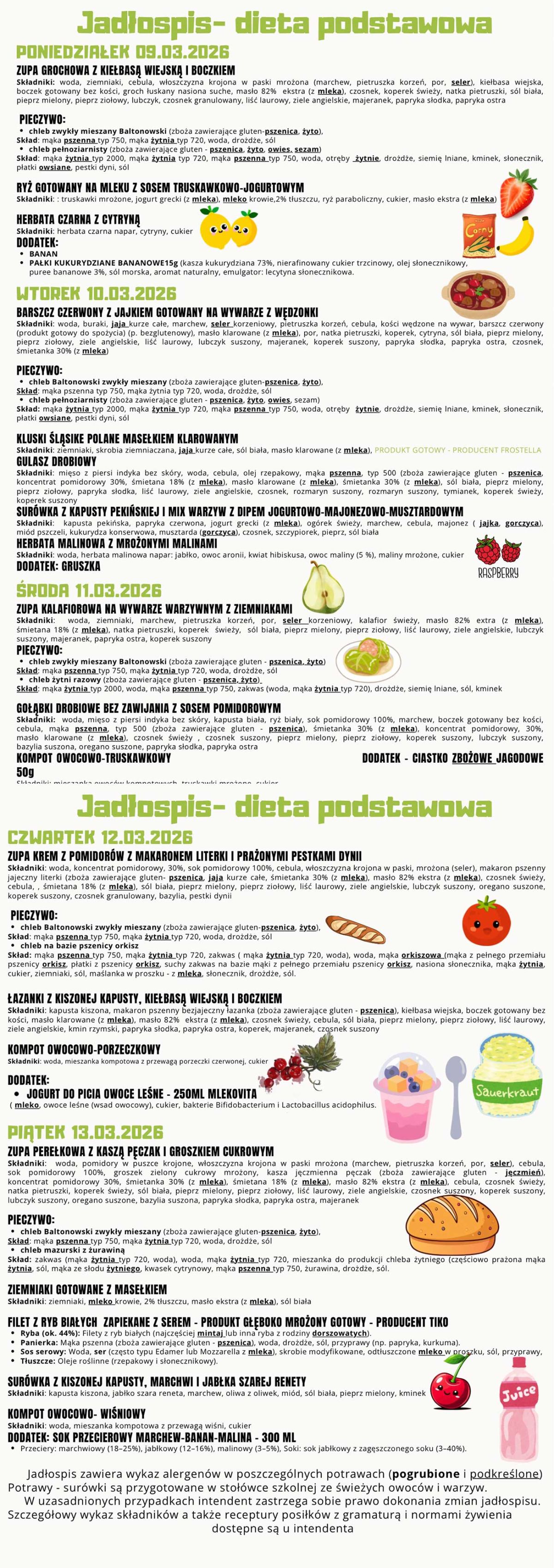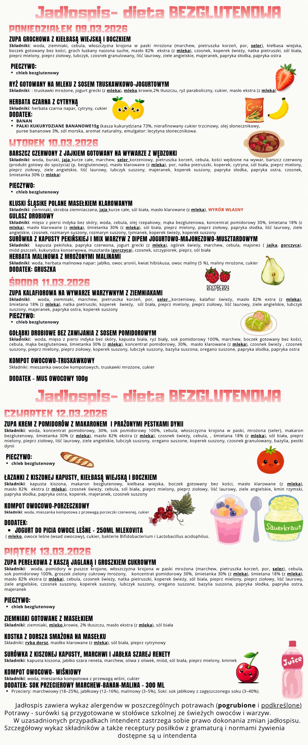 Jadłospis 09.03. - 13.03.2026 r. - dieta bezglutenowa >>>