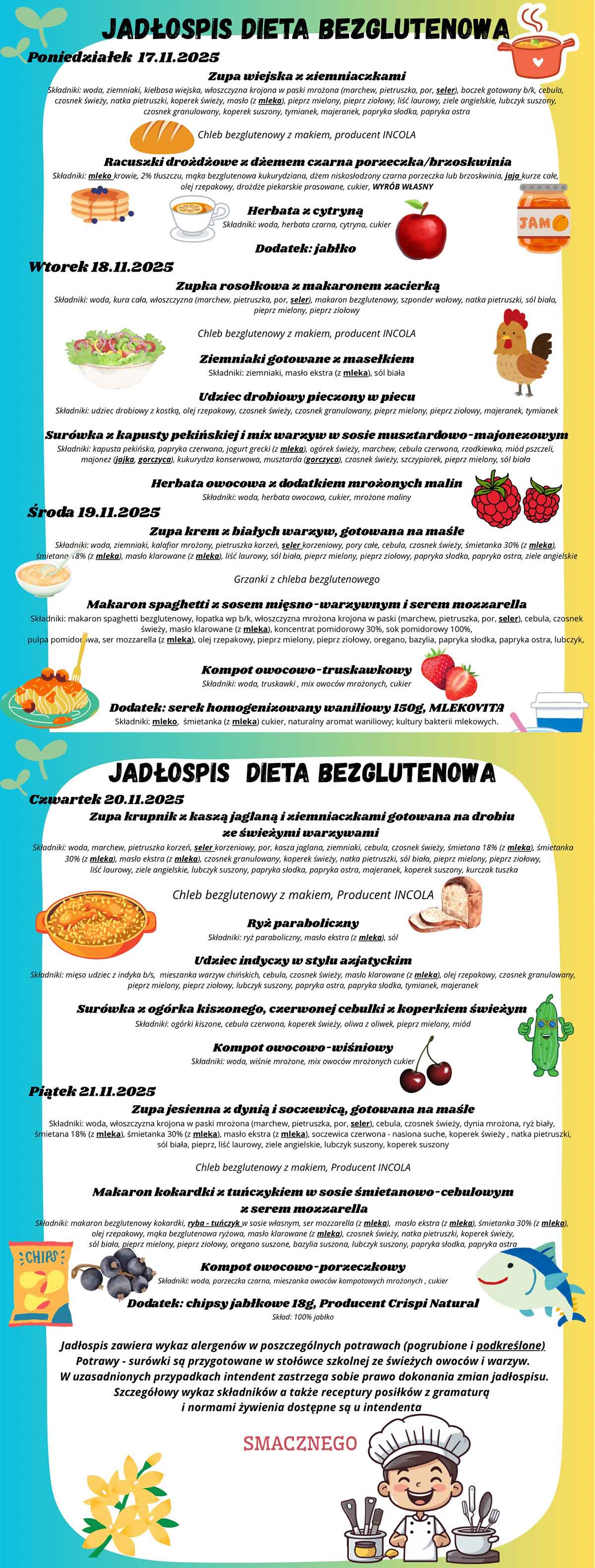 Jadłospis 08.12. - 12.12.2025 r. - dieta bezglutenowa >>>