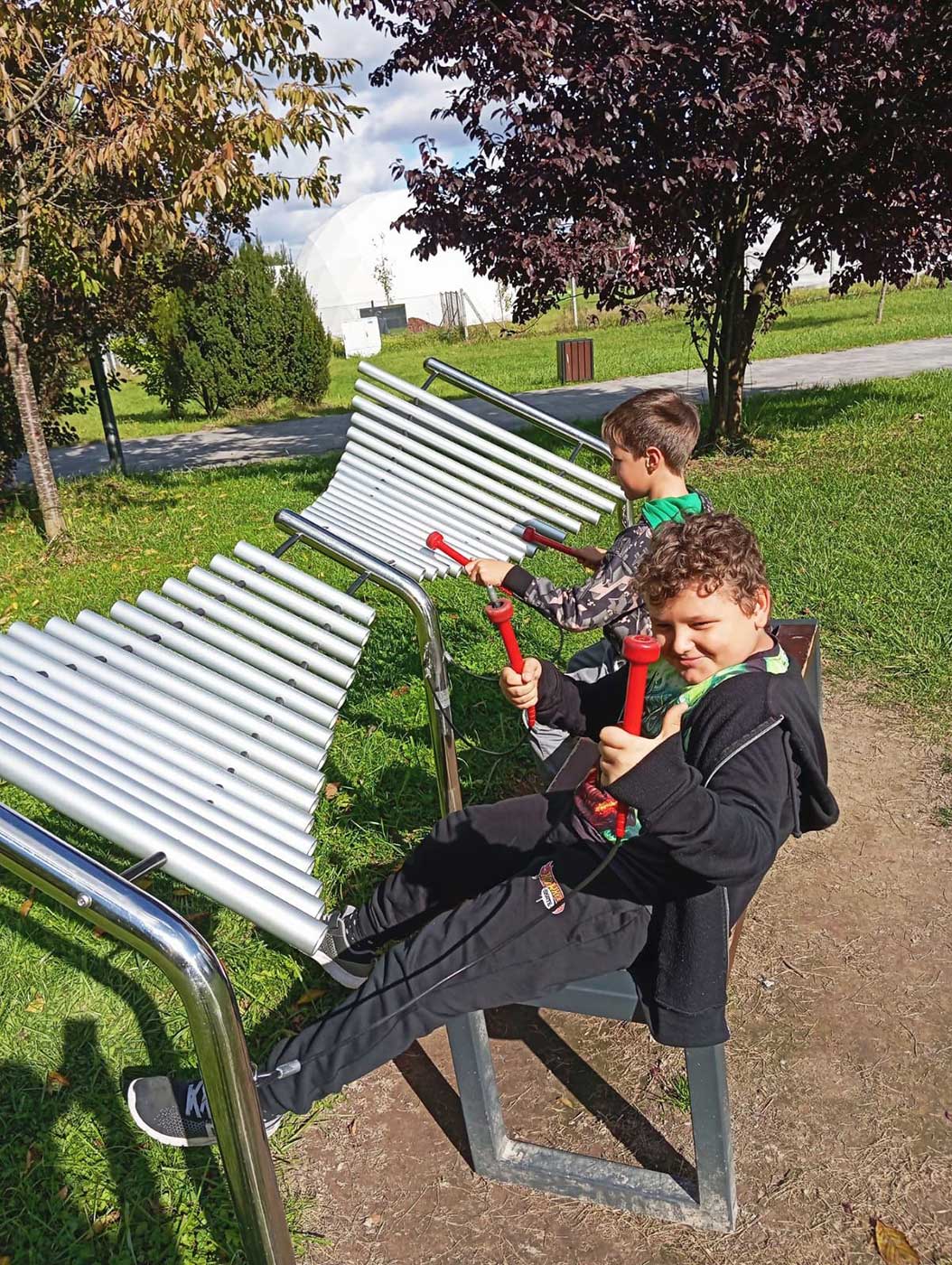 Na placu muzycznym uczniowie mogli tworzyć własne kompozycje, grając na nietypowych instrumentach inspirowanych naturą. Dźwięki lasu, wody i wiatru stały się tłem do wspólnej zabawy i twórczego wyrażania siebie.