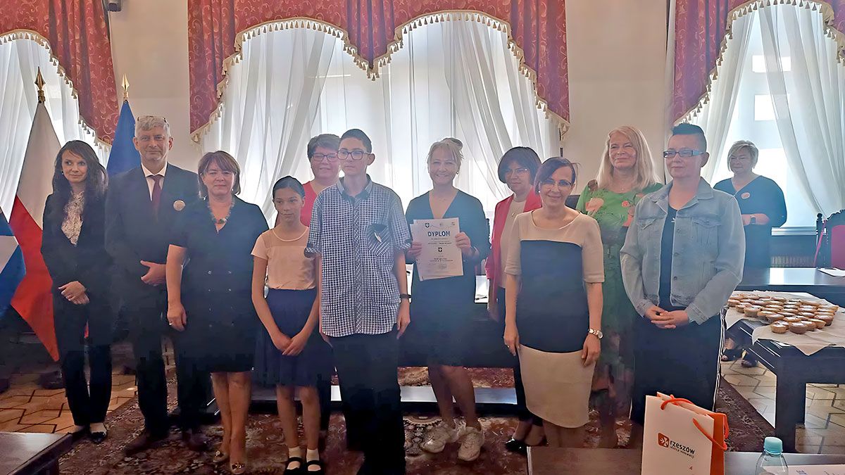 Chłopiec musiał wykazać się plastyczną interpretacją tematu oraz napisać tekst literacki, który miał być związany z naszym miastem. Uczeń zdobył drugie miejsce w swojej kategorii wiekowej. Nagrodę otrzymał z rąķ Pani Wiceprezydent - Krystyny Stachowskiej.