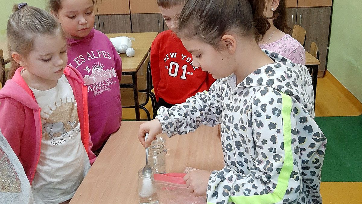Eksperymentowanie bardzo podoba się dzieciom, więc w środę uczniowie z klasy 1a wykonali doświadczenia z wodą. Na początku mali badacze próbowali przewidzieć, które substancje, z pięciu wybranych, rozpuszczą się, a które nie. Do doświadczenia wykorzystano sól, cukier, piasek, pieprz w ziarenkach i mąkę. Po zakończeniu eksperymentu dzieci zweryfikowały swoje przypuszczenia. Wszyscy już byli pewni, że cukier, sól i mąka rozpuszczają się w wodzie, natomiast piasek oraz pieprz – nie.