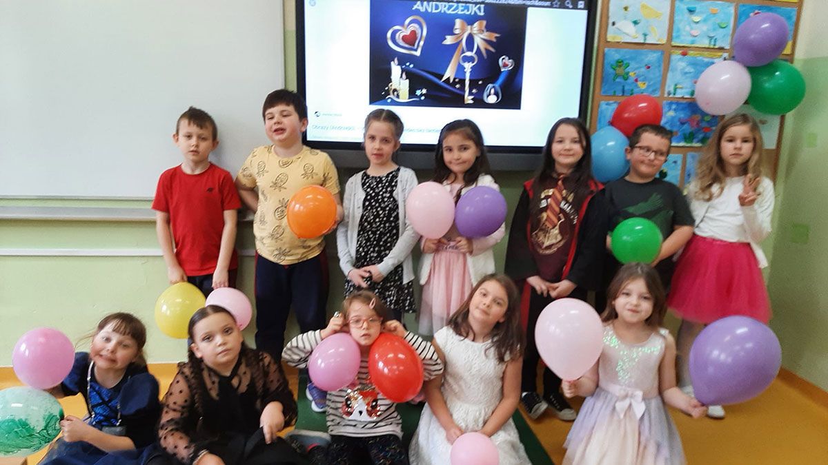 29 listopada dzieci z klasy 1a obchodziły andrzejki. Według dawnych wierzeń noc świętego Andrzeja miała moc magiczną, pozwalającą zerknąć w przyszłość. Dziś andrzejki są okazją do dobrej zabawy. Aby umilić ten czas rodzice zadbali o słodki poczęstunek. Po posiłku nadszedł czas na wróżby i zabawy andrzejkowe, które w większości przygotowali i przeprowadzili uczniowie z klasy 4a. Każdy chciał dowiedzieć się, co go czeka w przyszłości. Dzieci przekłuwały serduszka z imionami, poznawały swoje przyszłe zawody oraz magię liczb. Oczywiście nie mogło zabraknąć wróżby z butami. Podczas tych zabaw było mnóstwo śmiechu i zabawy, bo przecież wiadomo, że należy je traktować z ,,przymrużeniem oka”. Najważniejsze, że dzieci miło spędziły czas i wszyscy dobrze się bawili.