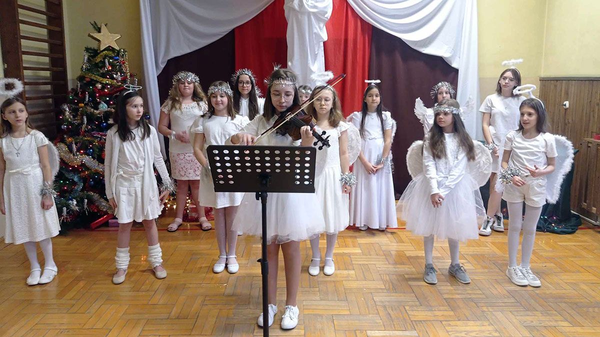19 grudnia 2023 r. o godz. 16.00 w małej sali gimnastycznej miało miejsce rozdanie nagród konkursowych dla przedszkolaków pt. „Anioł Radości”. Jury przed dokonaniem oceny podzieliło nadesłane prace na dwie kategorie wiekowe: 3 i 4 lata oraz 5 i 6 lat. Spośród nich nagrodzono te, które szczególnie ujęły komisję pomysłowością, interpretacją tematu oraz humorem. Wybór był niesłychanie trudny! Przyznano więc, po dwa miejsca pierwsze, drugie i trzecie wśród młodszych i starszych dzieci oraz 10 wyróżnień. Zwrócono też uwagę na najmłodszego uczestnika, który otrzymał nagrodę specjalną.