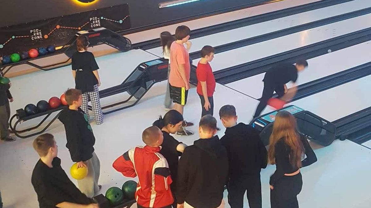 Następnie ósmoklasiści odwiedzili kręgielnię "Podkręcone". Podczas gry mieli możliwość rozwijania precyzji oraz koncentracji. Ponadto miło spędzili czas we własnym towarzystwie.