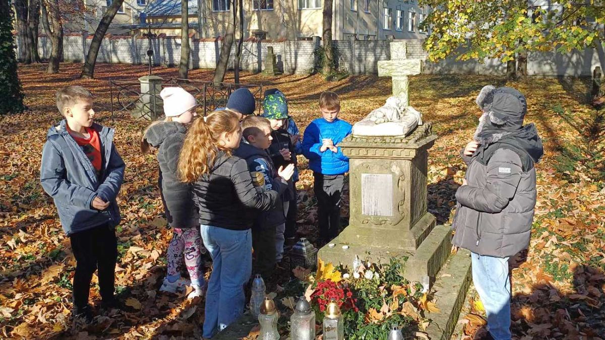 Spacerując po cmentarnych alejkach, uczniowie podziwiali stare, zabytkowe pomniki, zapalali znicze i modlili się za dusze zmarłych. Taka wycieczka to dobra okazja do rozmowy z dziećmi o tym, jak ważna jest pamięć o tych, którzy odeszli do krainy wiecznego życia. Uczniowie uświadomili sobie, że człowiek żyje tak długo, jak długo trwa w naszych wspomnieniach, rozmowach, sercach i myślach.