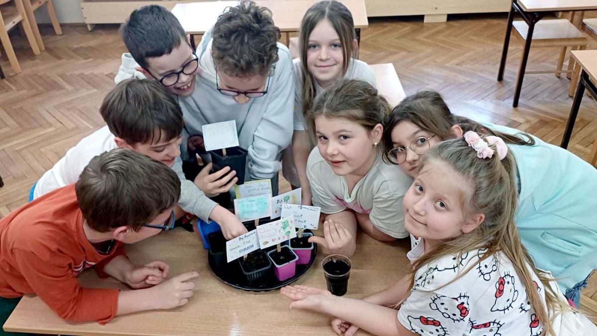 Kolejnym etapem było opisanie swojej pracy, czyli wykonanie pięknej metryczki z datą narodzin drzewa oraz jego imieniem. Teraz każdego dnia wyznaczeni przyrodnicy opiekują się hodowlą. Uczniowie wiedzą, że uprawa roślin wymaga przede wszystkim troski i miłości.