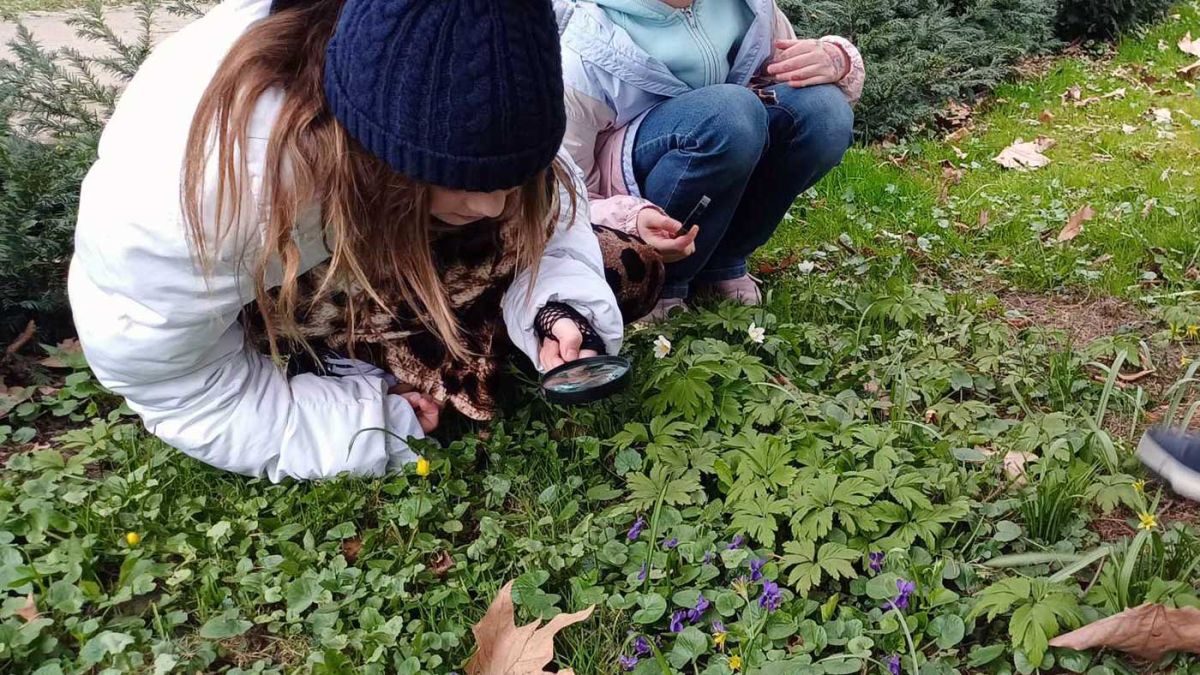 Podczas zajęć przyrodniczych uczniowie udali się do parku w poszukiwaniu pierwszych śladów wiosny. Do swoich prac badawczych wykorzystali lupy. Dzięki wspólnej pracy znaleźli pierwsze kwiaty: zawilce, fiołki, stokrotki i bratki. Obserwując przyrodę dostrzegli również owady i pąki na drzewach. Wszystkim działaniom towarzyszył radosny śpiew ptaków.