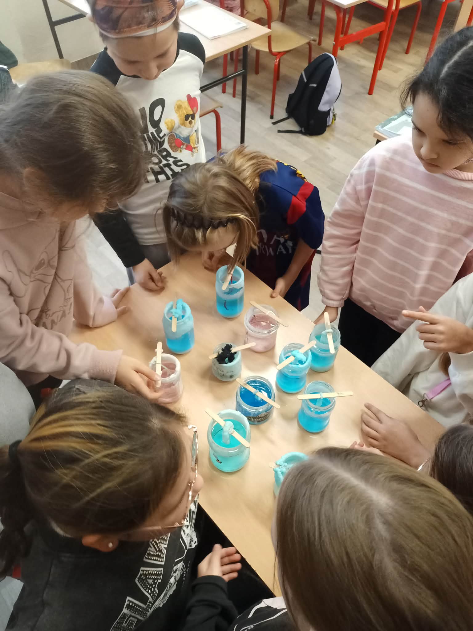 Doświadczenie zakończyło się sukcesem, a kolorowe kryształki stały się dowodem zaangażowania i ciekawości klasy 3b.