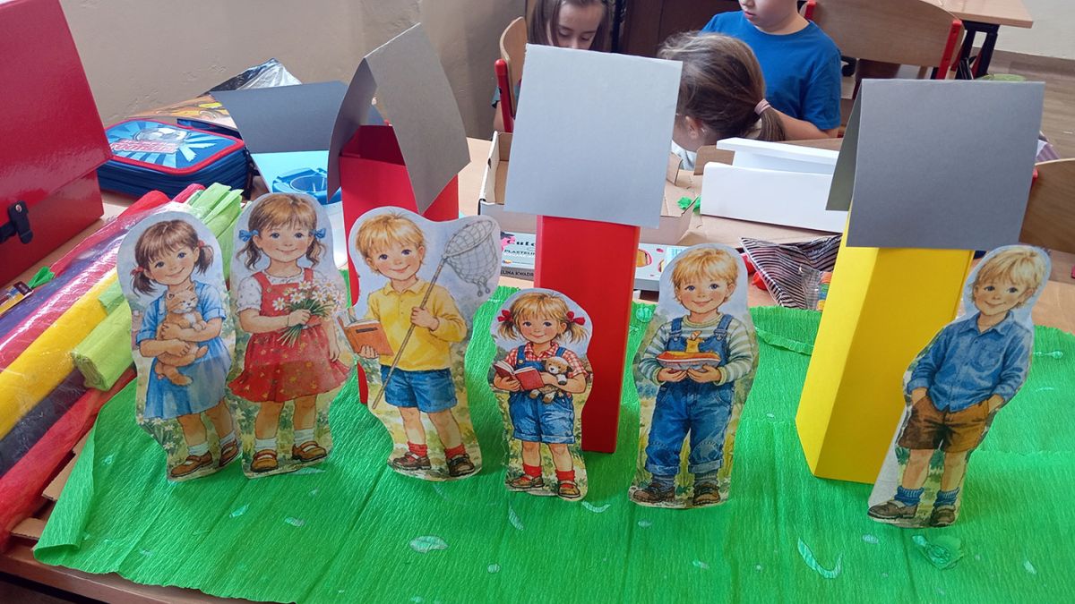 Podczas zajęć wykonywali różnorodne zadania sprawdzające rozumienie tekstu, m.in. dotyczące bohaterów, wydarzeń oraz życia codziennego dzieci w Bullerbyn. Dowiedzieli się, jak wyglądały relacje między bohaterami, jakie mieli obowiązki oraz w jaki sposób wspólnie spędzali czas, bawiąc się i pomagając dorosłym. Uczniowie zwrócili uwagę na wartości takie jak przyjaźń, współpraca, odpowiedzialność oraz radość płynąca z prostych, codziennych zajęć. Zwieńczeniem pracy była aktywność twórcza - uczniowie wykonali pokój Lisy, starając się odwzorować jego wygląd na podstawie treści książki oraz pracując w grupach wykonali i zaprezentowali plan wsi Bullerbyn z uwzględnieniem trzech zagród. Praca miała charakter twórczy i zespołowy, sprzyjała współpracy oraz utrwaleniu wiadomości z lektury.