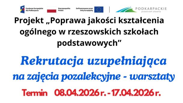 Szkoła Podstawowa nr 3 im. H. Sienkiewicza w Rzeszowie ogłasza nabór uzupełniający na następujące zajęcia: