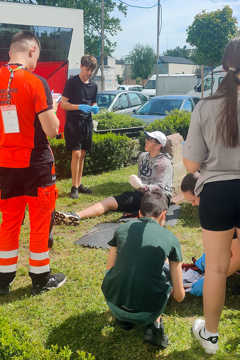 Udzielaniu pierwszej pomocy w pozorowanych wypadkach i zdarzeniach towarzyszyły ogromne emocje, a rozwój sytuacji i zachowania pozorantów były zaskakujące i trudne do przewidzenia. Jednak nasza drużyna poradziła sobie wspaniale. Atmosfera i organizacja igrzysk była na bardzo wysokim poziomie, a na uczestników po wyczerpujących zmaganiach czekał poczęstunek. Po ogłoszeniu wyników i rozdaniu nagród zespołom organizatorzy wytypowali i nagrodzili dodatkowo trzech wyróżniających się młodych ratowników. Pośród nich znalazła się nasza uczennica Jagoda Pytlos z klasy 8b. Gratulacje dla wszystkich!
