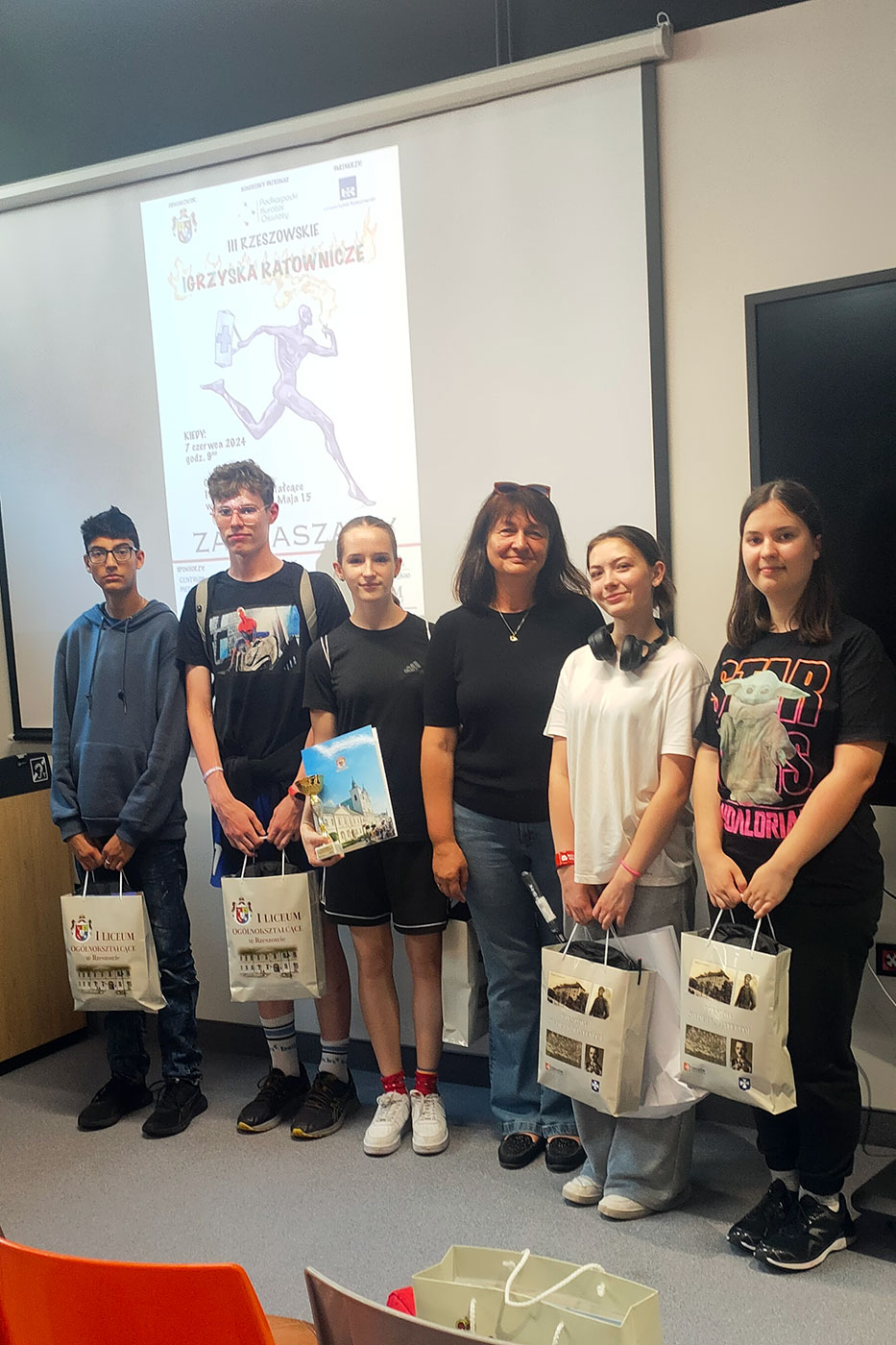 Nasza drużyna w składzie: Julia Pietruszka, Jagoda Pytlos, Ania Wilk, Martin Pociask i Feliks Kordyś, w dniu 7 czerwca uczestniczyła w "III Rzeszowskich Igrzyskach Ratowniczych" organizowanych przez I Liceum Ogólnokształcące w Rzeszowie.