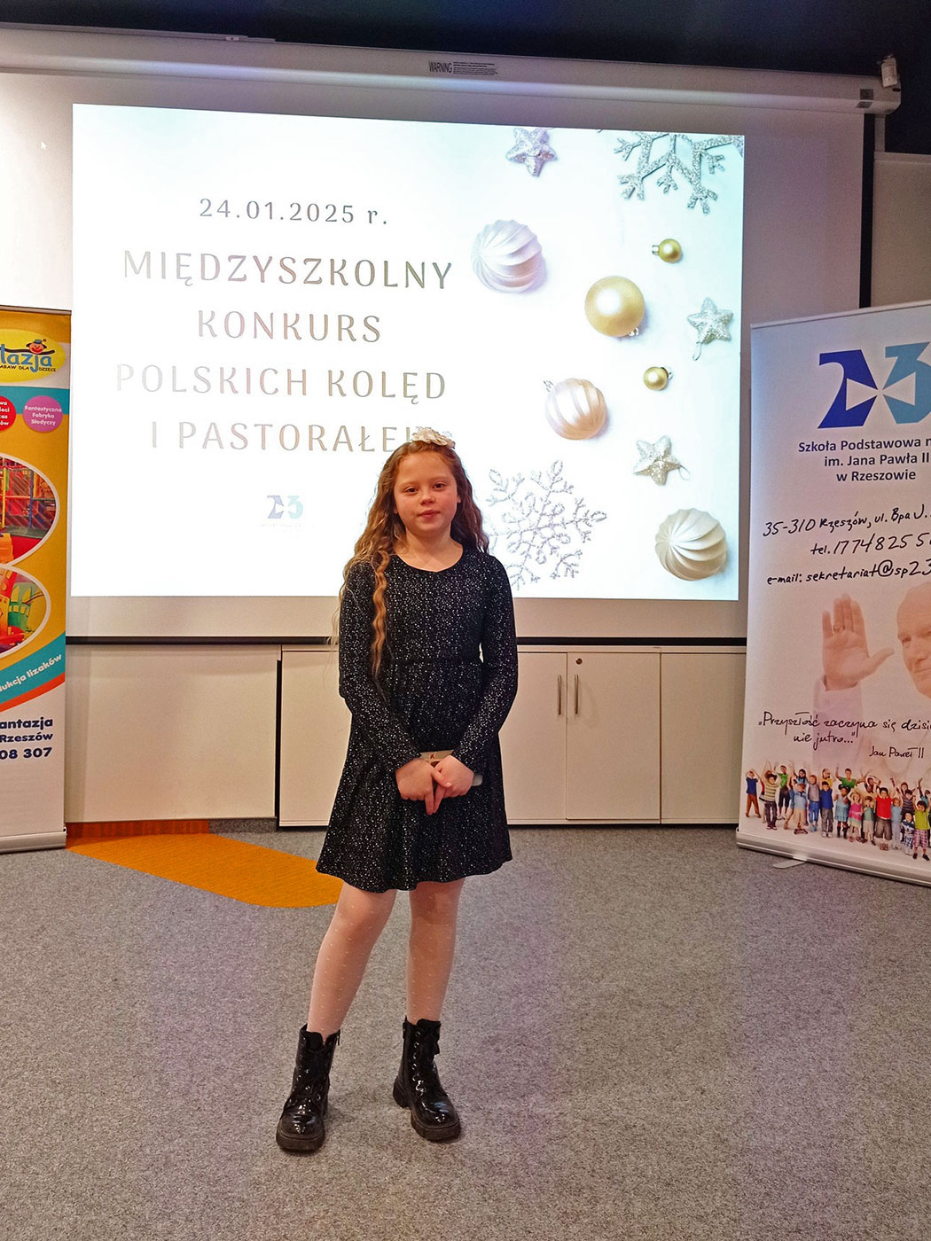 Uczennica klasy 5 b Marcelina Sak wyśpiewała wyróżnienie w Międzyszkolnym Konkursie Polskich Kolęd i Pastorałek organizowanym przez Szkołę Podstawową nr 23 w Rzeszowie.