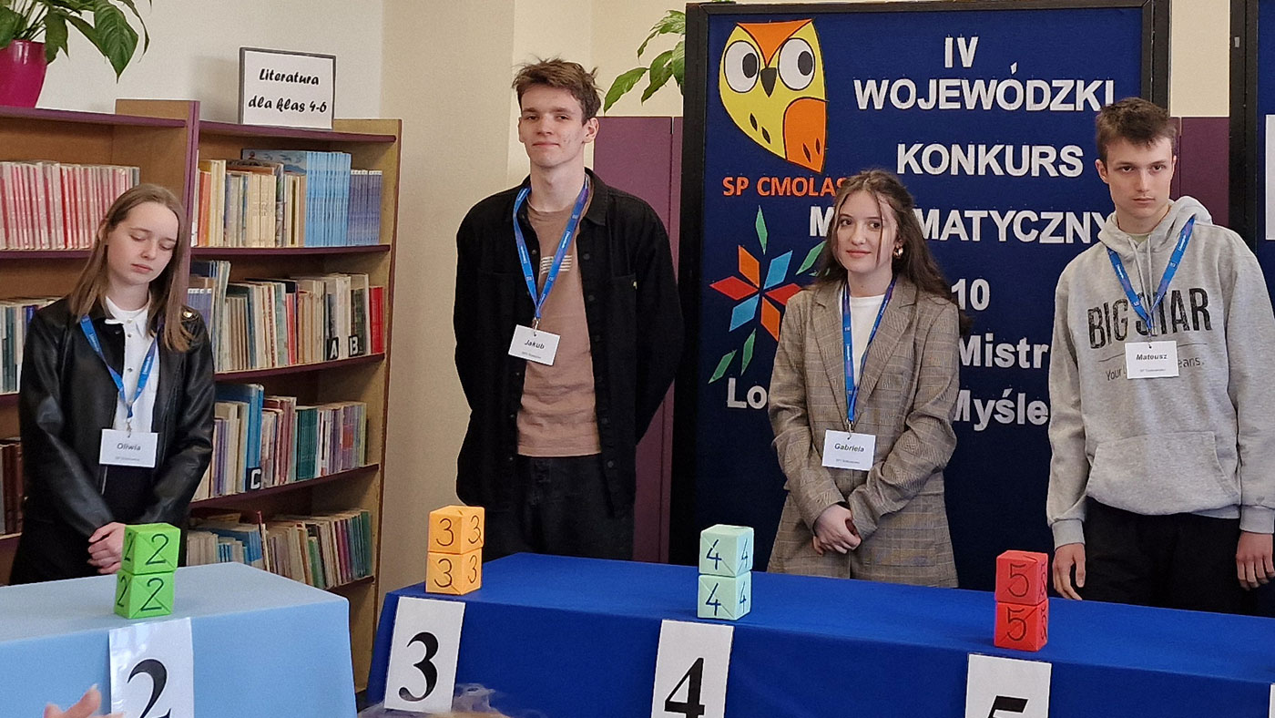 Jakub Stromidło z kl 8a został finalistą IV Wojewódzkiego Konkursu Matematycznego "Jeden z dziesięciu" o tytuł "Mistrza logicznego myślenia", który odbył się w Szkole Podstawowej w Cmolasie. Konkurs ten sprawdzał zdolności logicznego myślenia oraz umiejętność szybkiego kojarzenia faktów i podejmowania trafnych decyzji pod presją czasu.