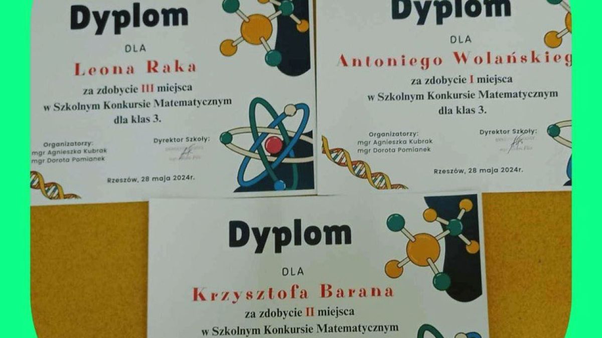 W naszej szkole odbył się emocjonujący Szkolny Konkurs Matematyczny dla uczniów klasy trzeciej. Zadania były naprawdę wymagające, a uczestnicy musieli wykazać się dużą wiedzą i umiejętnościami.